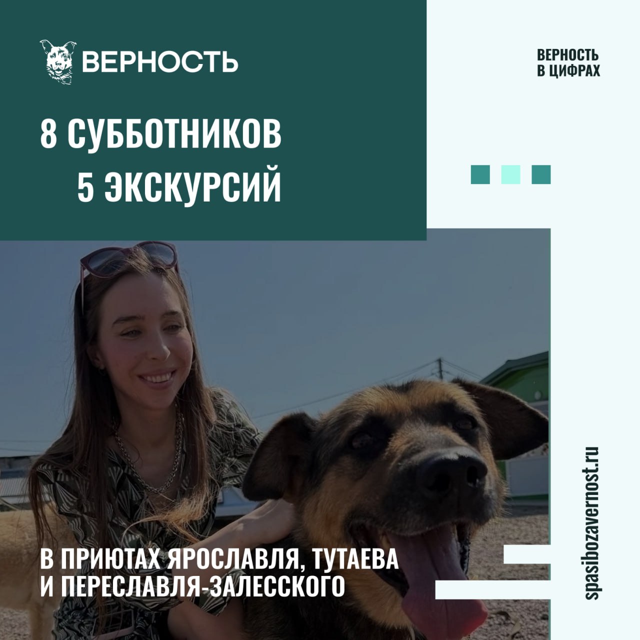 - В 3 приютах в Ярославле, Переславле-Залесском и Тутаеве организовали 8 субботников для 30 человек, 5 экскурсий для 71 человека. Мероприятия прошли в рамках «Хорошего проекта», поддержанного Фондом президентских грантов.